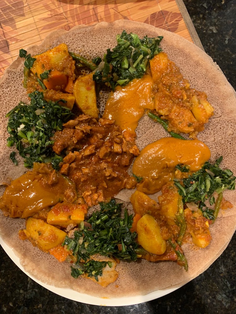 I love to teach simple techniques to prepare ethnic food that is rich in flavor. Ethiopian & Eritrean cooking relies on a diverse range of herbs and roots to develop characteristics quintessential to the cuisine. I pride myself on cooking & serving food in a traditional way with authentic spices and serve on a large, family-style platter atop of Injera. Injera is unique staple food to both countries and also serves as an edible utensil. It’s best known for spongy sourdough flatbread; one can’t really have an authentic feast without it.